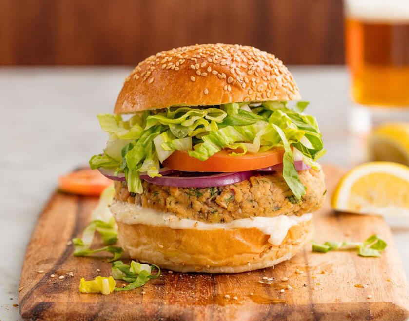 If you're after something a bit lighter than potato-packed fishcakes, try these simple salmon burgers with ginger, soy sauce and coriander.